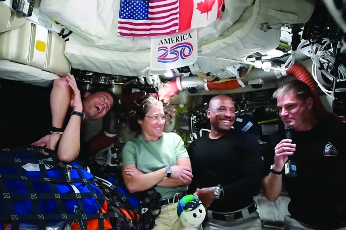 AP Photo This image from video provided by NASA shows the Artemis II crew, from left, Commander Reid Wiseman, mission specialist Christina Koch, pilot Victor Glover and Canadian astronaut and mission specialist Jeremy Hansen as they answer media questions during a video conference Wednesday.