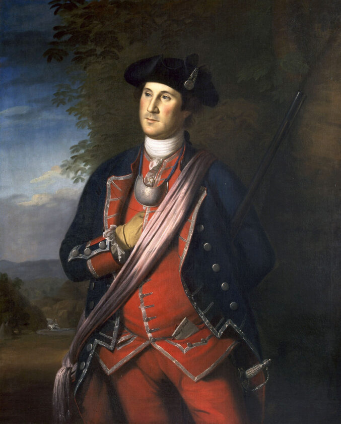 In May 1755, Washington joined British Gen. Edward Braddock on an expedition to Pittsburgh with the intent of capturing the French stronghold of Fort Duquesne. Braddock’s troops were ambushed on July 9, 1755, and Braddock was mortally wounded, leaving Washington in command as his soldiers fled south.