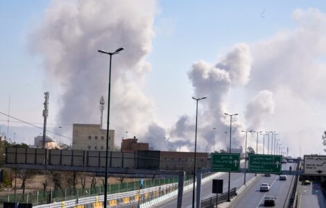 As attacks spread after the bombing of Iran by U.S. and Israeli forces, a video circulated widely of crowds peering up at fire, smoke and debris coming from the top of a high-rise building said to be in Bahrain.