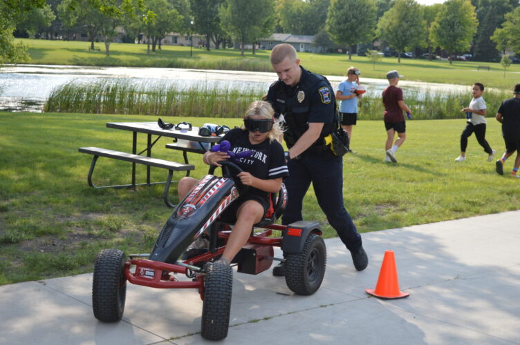 MARSHALL — Hands-on experiences were some of big draws at Marshall’s National Night Out on Tuesday. A line of kids were waiting their turn to try steering a pedal car while wearing special goggles that helped simulate the effects of impaired driving.
