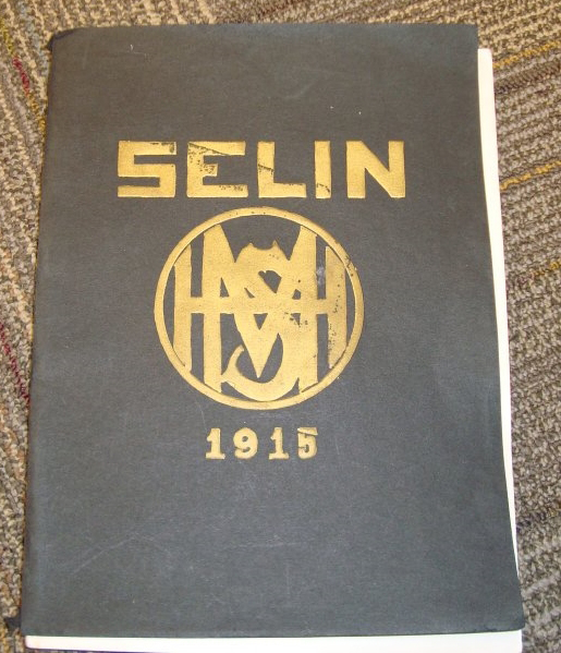 The photograph featured this week shows an image of the 1915 Marshall High School Annual from the Lyon County Museum’s collection. For a few years, the yearbook was titled the Selin before the name changed to Marhian.