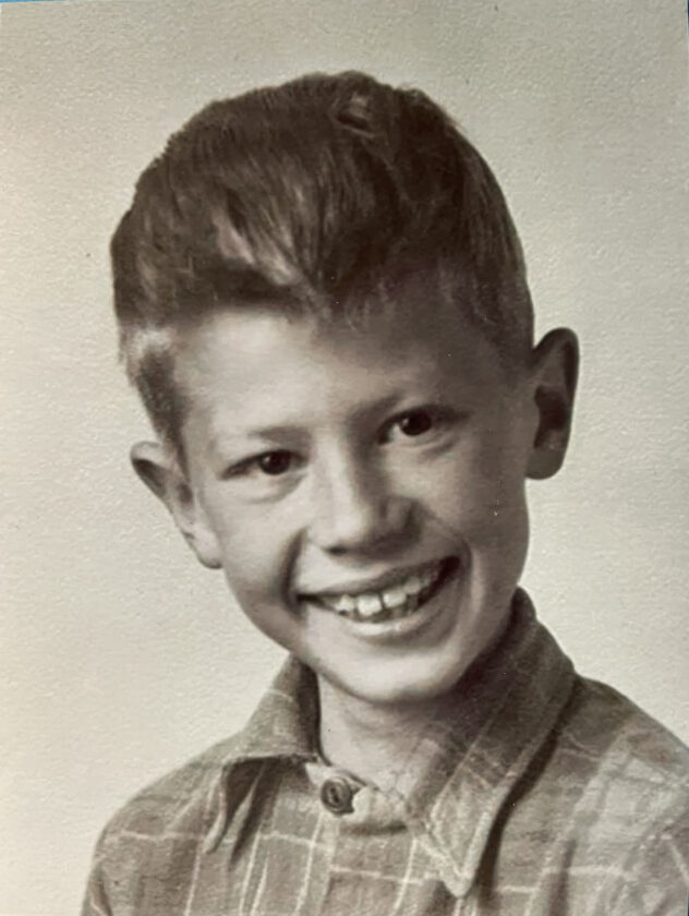 “We’d let our imaginations go. Sometimes we’d play cowboys and Indians. One of us would be the cowboy and a couple of us would be the Indians and then we’d switch off. We’d be chasing each other around the grove. One would hide and try to sneak up on the others. Sometimes we’d fix up an old wagon like it was a covered wagon. We’d be driving down and be attacked by Indians. We also made a bunch of slingshots. We practiced finding the right kind of inner tube for making them. We tried hunting gophers or birds with our slingshots. We never got anything, but it was fun going (in the grove) and pretending we were frontiersmen. My neighbors had a bunch of walnut trees, so we’d throw walnuts at each other. We found the stain from walnuts really got in your hands. That was when they still had the outside shell.”