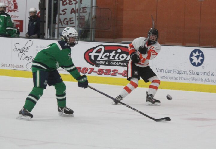 LITCHFIELD — The Marshall boys hockey team were outworked on the offensive end in a 9-1 loss on the road Friday night to Litchfield/Dassel-Cokato. Morgan Rokeh scored the Tigers’ goal, assisted by Brenden Price.