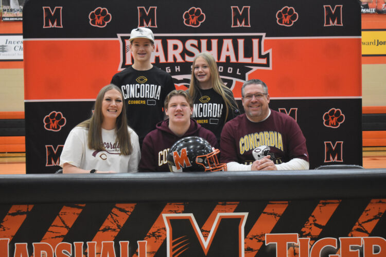 MARSHALL —Aidan Erickson, a senior offensive lineman for the Marshall football team, announced on Wednesday that he’ll be continuing his athletic career at Concordia College in Moorhead.