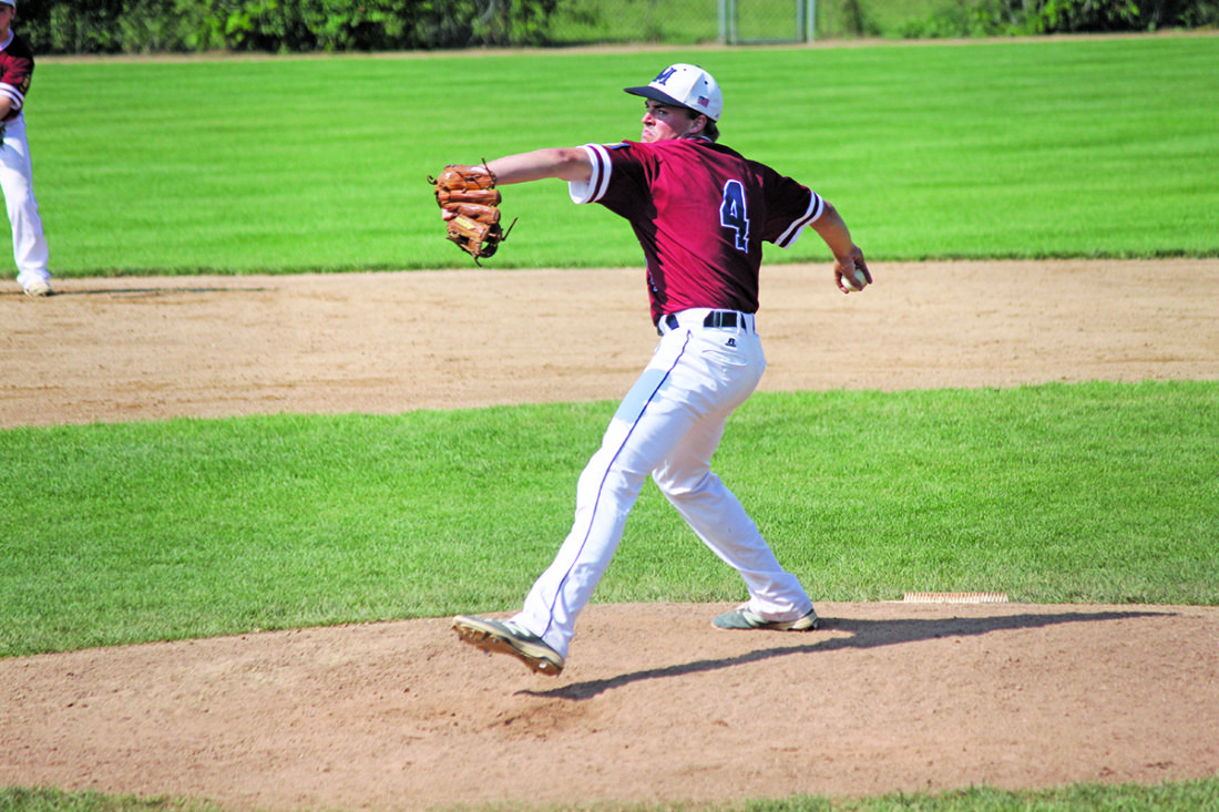 Photo by Sam Thiel Marshall’s Ryan VanMoer delivers a pitch during their game against Willmar Friday. The Mudcats defeated Willmar 14-11, but fell to Cold Spring later in the afternoon 12-2 in five innings.