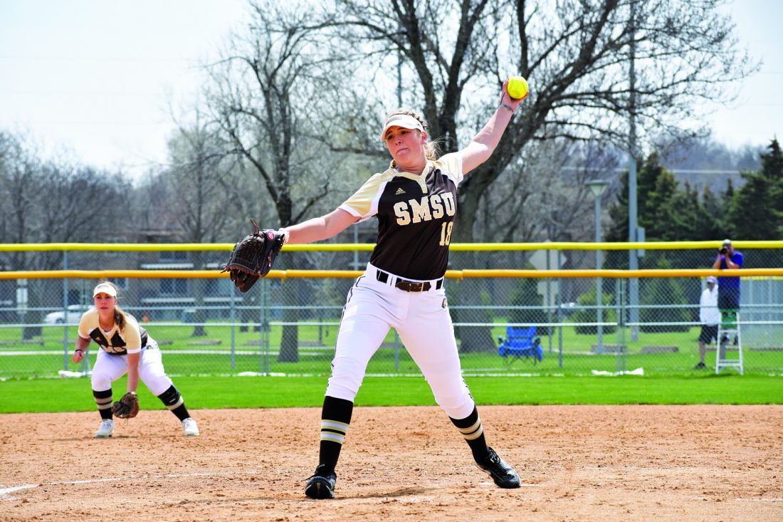Independent file photo SMSU’s Megan Cull winds up a pitch during their NSIC Tournament game against MSU Mankato on May 3, 2018. The Mustangs open their 2019 season today.