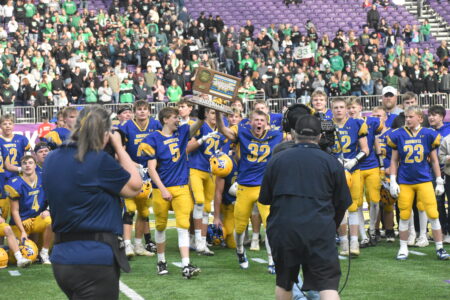 Among those still vying for gold is a newcomer to the tournament in Marshall’s 106-pound wrestler Dylan Louwagie, who defeated both of his opponents decisively on Friday and will take on Ty Bisek of New London-Spicer in the semifinals today.