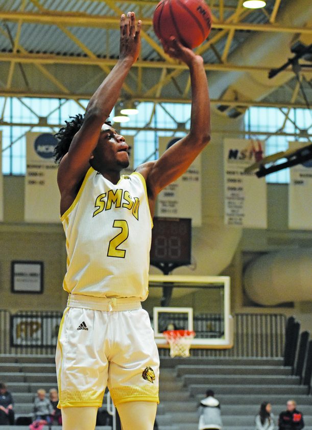 Independent file photo SMSU’s Cliff McCray shoots a jumper during their game against the University of Sioux Falls on Dec. 21. The Mustangs will face Concordia-St. Paul and MSU Mankato this weekend.