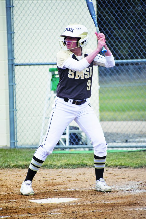 Independent file photo SMSU’s Lauren Klein awaits a pitch during their game against MSU Mankato on April 9, 2019. SMSU will face Minot State today.