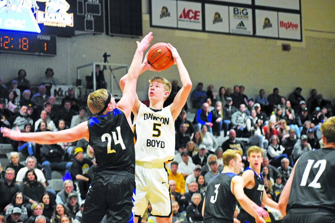 MARSHALL — The No. 3N Dawson-Boyd boys basketball team knew things were going to be challenging against top-seeded Central Minnesota Christian in their Section 3A semifinal matchup, especially with CMCS winning 12 straight games and 17 of its last 18. With a trip to the section championship on the line, DB found itself in a double-digit halftime deficit and wasn’t able to overcome it despite a second-half rally, as CMCS earned a 61-52 victory on Saturday in the R/A Facility on the campus of Southwest Minnesota State University.