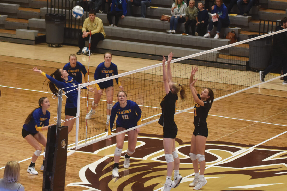 Leading the block party for the Vikings were Ireland Stassen and Ella Johnson, who finished with three blocks apiece. Megan Krog also added another two.