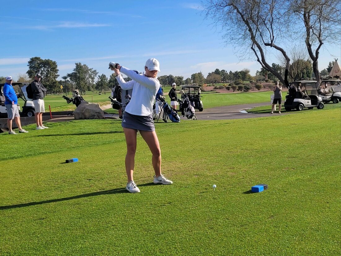 SMSU golfer Ashley Trongard prepares to take a swing off the tee at the SMSU Spring Classic in Litchfield Park, Arizona on Tuesday afternoon.