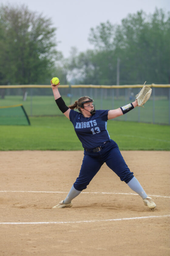 Photo by Holly Netzley Russell-Tyler-Ruthton junior Kya Alderson pitches against Murray County Central during the Knights’ 1-0 win over the Rebels in Tyler on May 19.