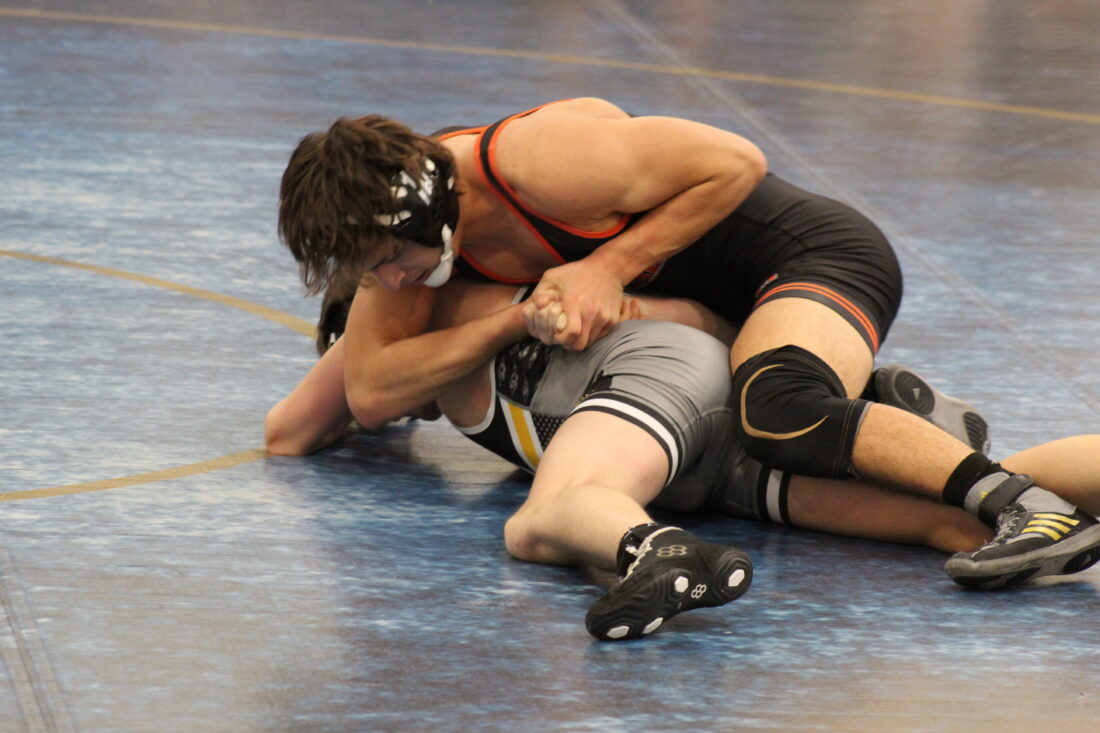 Photo courtesy of Marshall Area Wrestling Association: Marshall’s Tate Condezo wrestles with a Hutchinson opponent during a triangular at Minneota on Tuesday night.