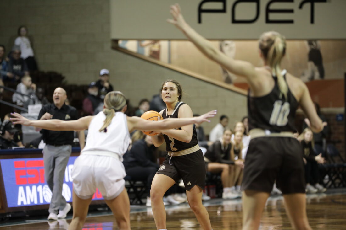 Unfortunately for the Mustangs, Wall didn’t have the opportunity to sustain her hot start. As the Mavericks attempted to inbound the ball halfway through the second quarter, Wall got tangled up with a Minnesota State defender and exited the game clutching her right shoulder. She returned in the third quarter but turned her ankle on Hannah Herzig’s foot during a scramble for a loose ball. Herzig finished the play with a fast-break layup to give the Mavericks a 67-61 lead at the third-quarter buzzer and Wall left the game, unable to return this time. She finished the night with 15 points on 4 of 7 shooting from 3-point range.