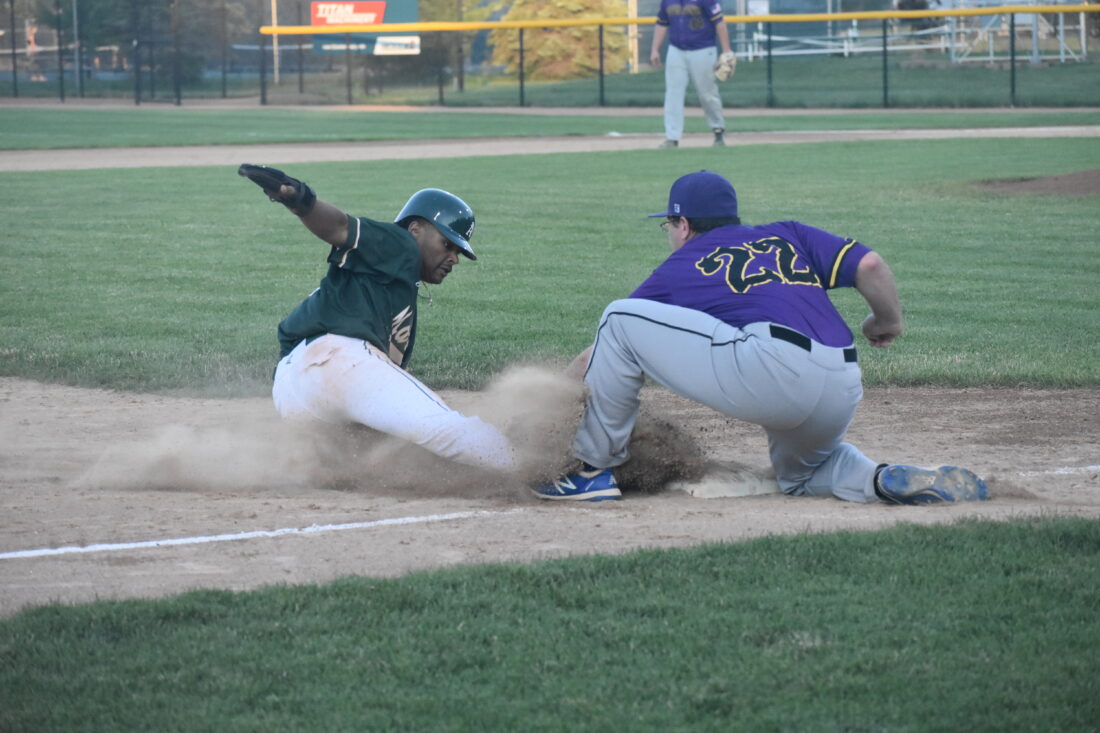 Photo by Jake McNeill Marshall designated hitter Chase Douglas slides into third base during a baseball game against Pipestone at American Legion Field in Marshall on Wednesday night.