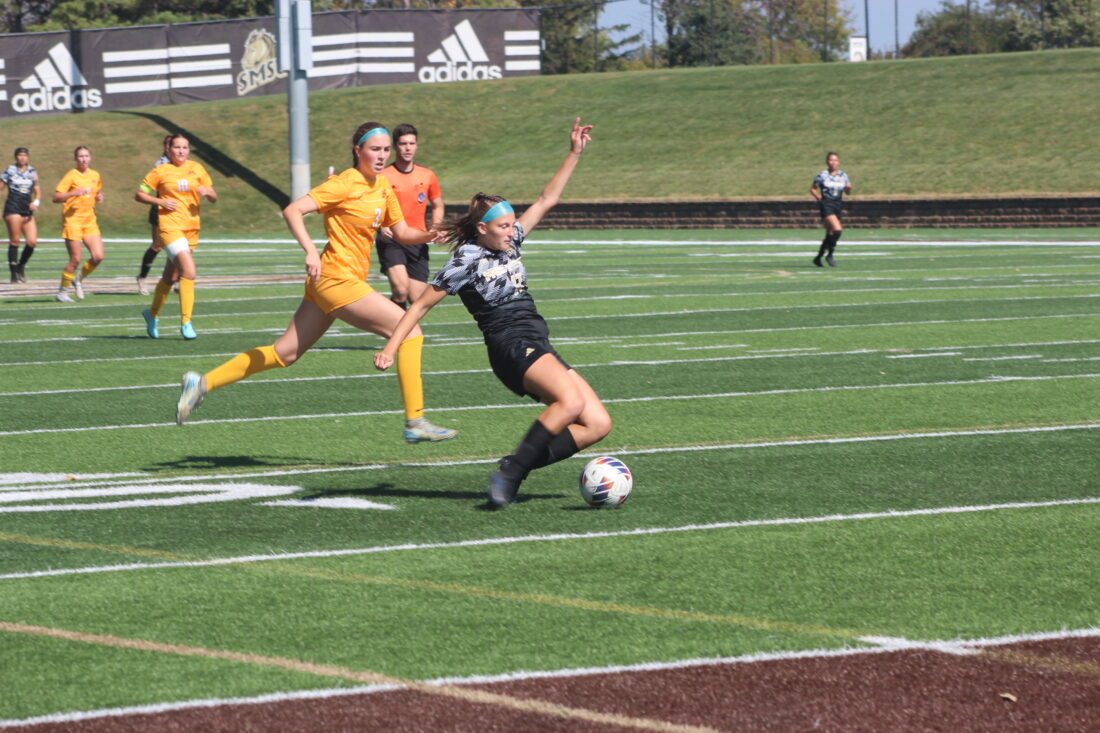 The Golden Eagles and Mustangs fought off one another throughout the first half, yet Wetterstrom was determined to find the net on senior day, leading SMSU with three shots in the first half.