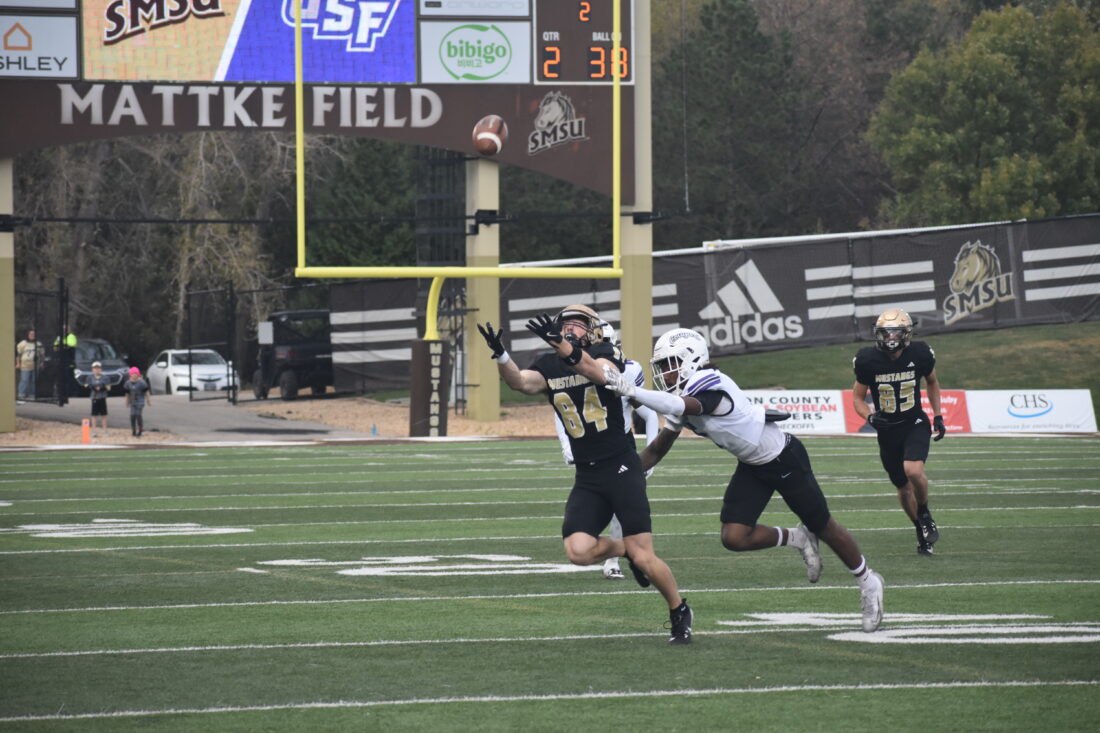 Tryg Auten set a new career high with 92 receiving yards on seven catches, including a 14-yard touchdown in the second quarter that ended Northern State’s 27-point run, trimming the deficit to 34-10. Later, Auten caught a nine-yard pass with 20 seconds left in the first half for SMSU’s second touchdown, cutting the deficit to 41-16 as halftime approached. Crowton completed 19 of 36 attempts for 200 yards, two touchdowns and three interceptions.
