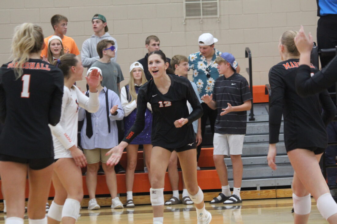 Marshall improves to 22-1 on the season with the win. The Tigers next head to Lakeville North for a tournament tonight starting at 5 p.m. The Tigers open with New Prague (12-9) and Moorhead (7-10) today before closing pool play against Prior Lake (13-8) to start Saturday’s matches at 10:15 a.m.
