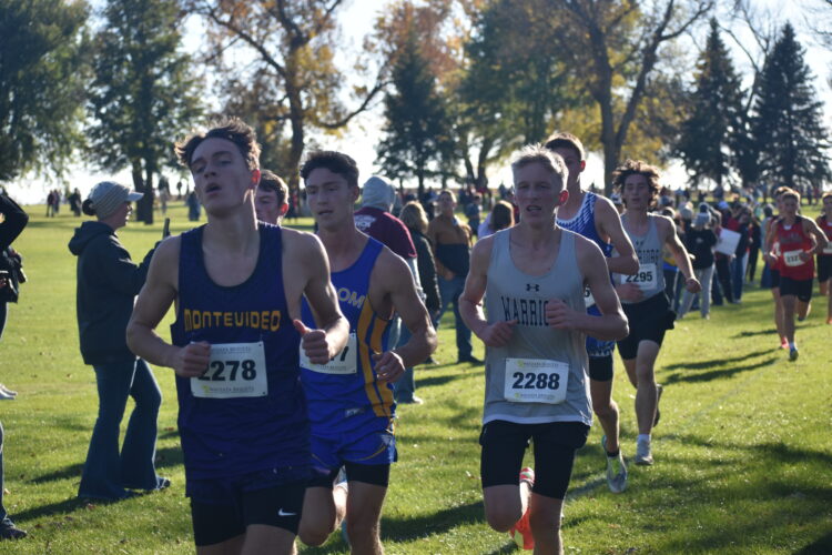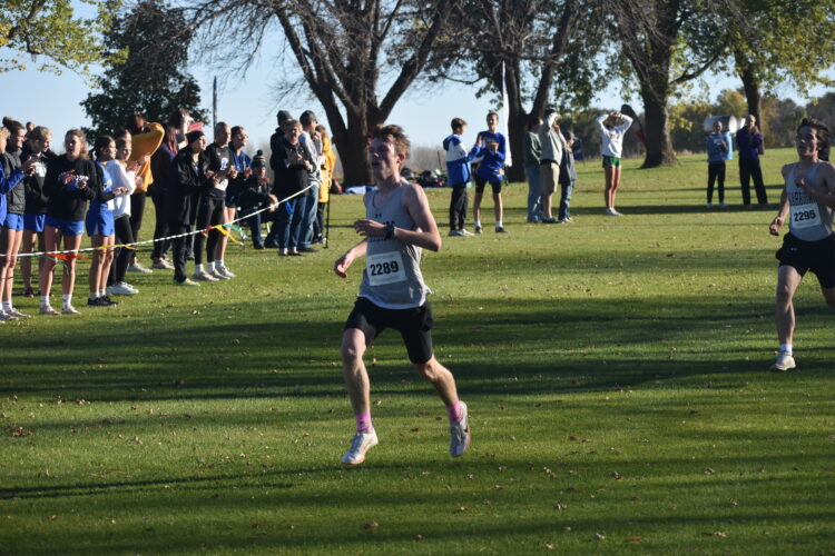 Photos by Samantha Davis: Wabasso's Andrew Morin runs the course at the Section 3A Championships Thursday afternoon in Madison, finishing in second and advancing to the state tournament. Below: Murray County Central/Fulda's Aiden Appel (2288) runs at sections, and finished in fourth to move onto state. Below: MCC/F's Alexander Betz (2289) approaches the finish line, and earned a bid into state. Below: MCC/F's Matthew Stapek (2295) runs the course, and will also compete at state.