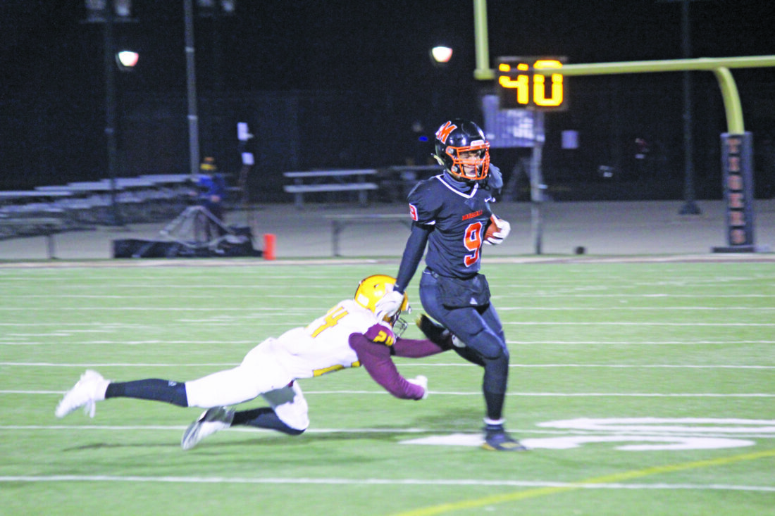 - Photo by Jake Pryztsarski: Bryce Lance looks to get past a Jordan defender during their Section 2AAAA tournament game on Nov. 19, 2020.