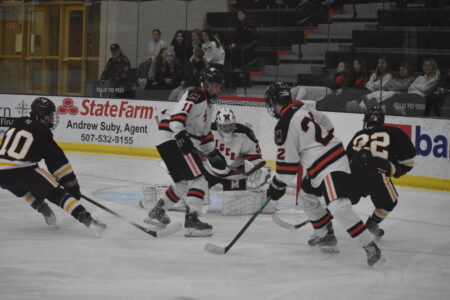 Just a minute later, Marshall goalie saved a shot from Wynn Sheldon with his pad, but Huner Welle was right there to tap in the rebound for a 2-0 lead with a minute left in the first period.