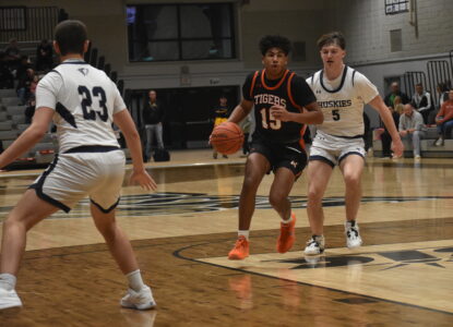 MARSHALL — With two seconds on the clock and the game on the line, the Marshall boys basketball team had the final possession and got the ball into the hands of sophomore forward Oliver Voigt near the free-throw line as he drilled in the game-winning shot at the buzzer to lift the Tigers over Class 2A No. 10 Jackson County Central 62-60 Saturday night in the first day of the Marshall Hoops Club Holiday Tournament. The game saw numerous lead changes and ties down the stretch, with the Huskies holding a 1-point halftime lead.