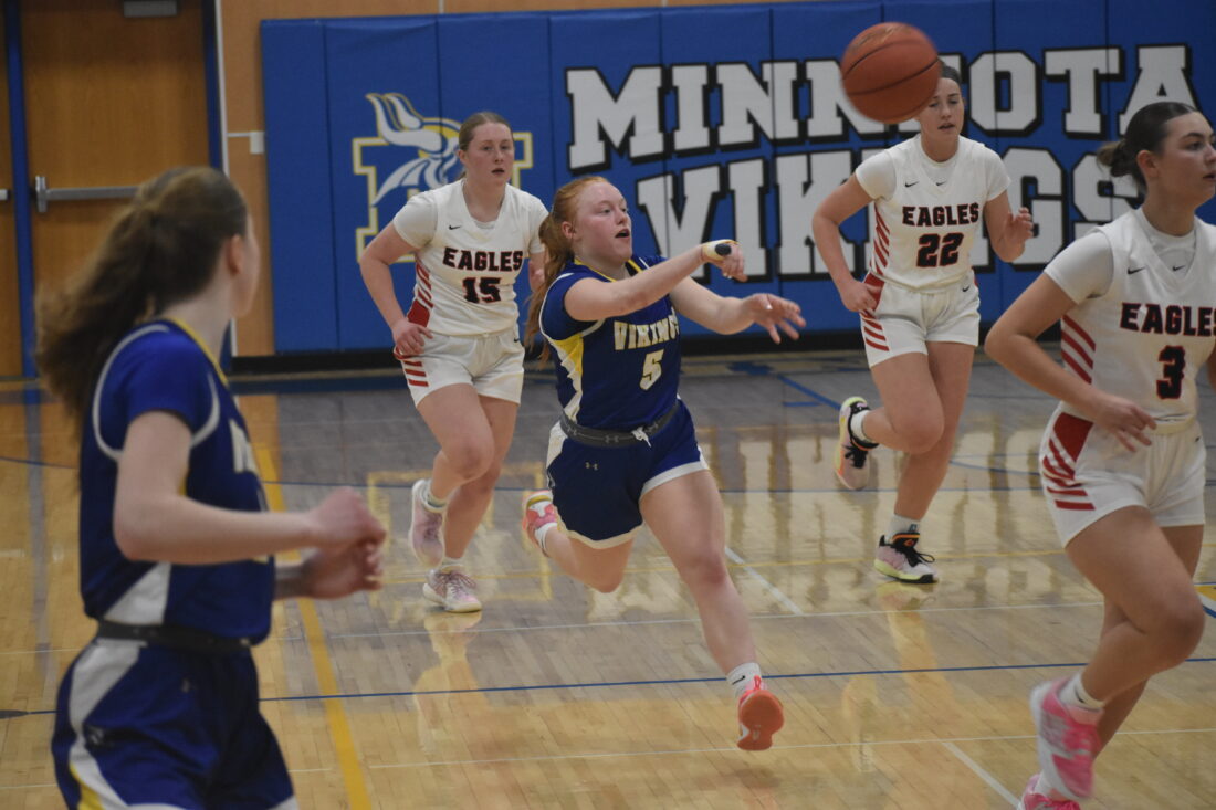 MINNEOTA — A strong interior defensive presence and a consistent ability to convert turnovers into points helped the Minneota girls basketball team run away with a lopsided win over Lac qui Parle Valley in Camden Conference play on Friday. The Vikings had multiple runs of more than 13 unanswered points in the first half alone as they ran away with a 78-26 win over the Eagles.