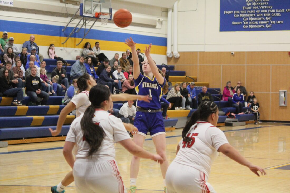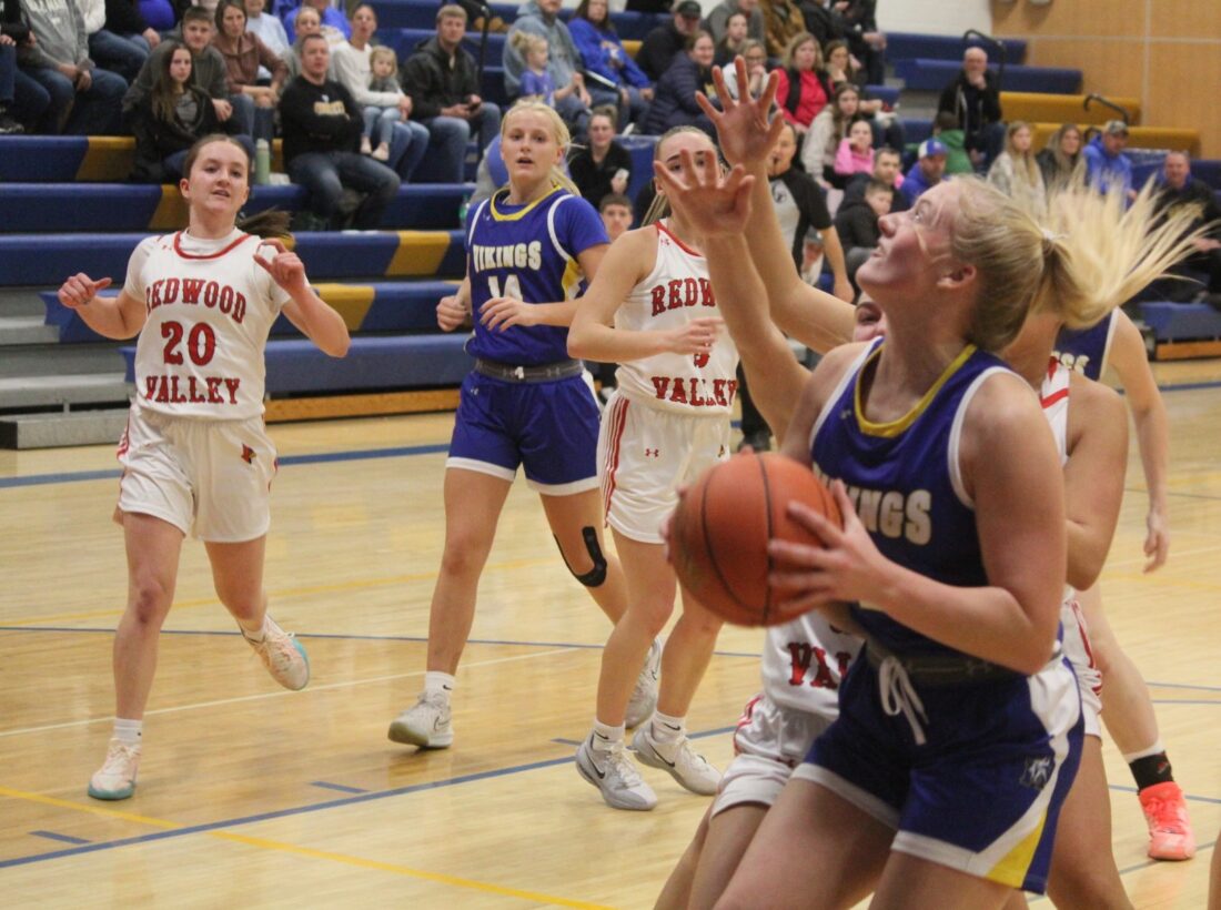 MINNEOTA — Opening up the new year with its third-straight win, the Minneota girls basketball team overcame first-half offensive struggles to fly to a 63-30 non-conference win over Redwood Valley Friday night. The Vikings held the Cardinals to just 15 points in both halves to power and keep ahead.