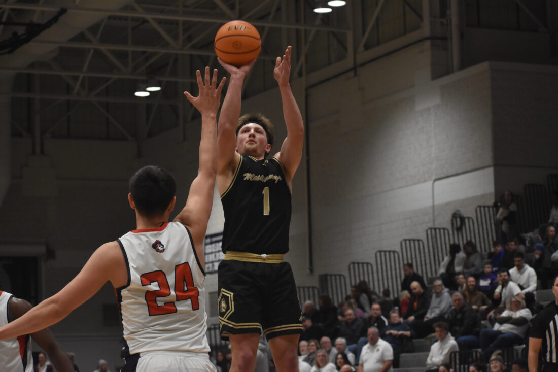 Photo by Jake McNeill: Southwest Minnesota State university guard Jakob Braaten shoots a jumpshot during the second half of a Northern Sun Intercollegiate Conference mens basketball game against UMary on Saturday in Marshall. SMSU is set to host Minnesota State University–Moorhead and Minnesota Crookston this weekend.