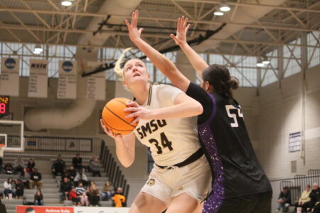 SMSU held a 44-43 lead after Grace Massaquoi hit a 3-pointer to start the fourth quarter for Moorhead, but the Mustangs pulled away from there. Gerads drained a 3 to give the Mustangs a two-possession lead and Nielsen followed up with a steal and a pair of layups to bring the Mustangs’ lead to 8 points. SMSU went on to lead by as many as 11 points in the quarter as they held on for the win.