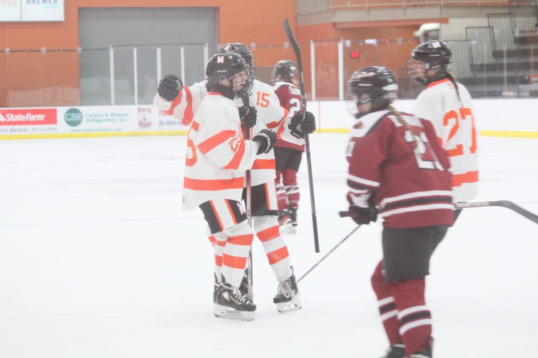 Marshall scored its last three goals of the first period in the span of two minutes, as Mauch scored her second with a feed from Ava Kolander skating up the left side of the goal to send the puck into the back right for the Tigers’ 4-0 lead.