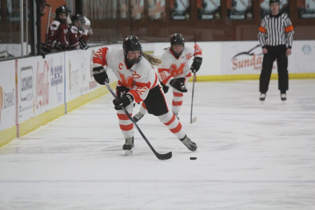 - Marshall’s Abbey Foley moves the puck up the ice in the second period against Fairmont Thursday night.