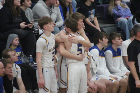 Minneota head coach Chad Johnston subbed out his seniors with a few minutes remaining, who individually shared hugs and hi-fives with the coaching staff and fellow teammates.