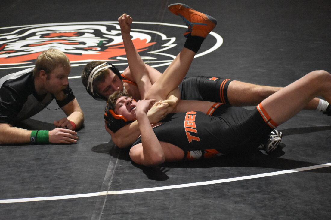 Noah Frazee picked up a 19-3 technical fall in 172 while Brayden Chandler won by forfeit in 189 to give the Marshall Tigers a 62-0 lead through 11 matches.