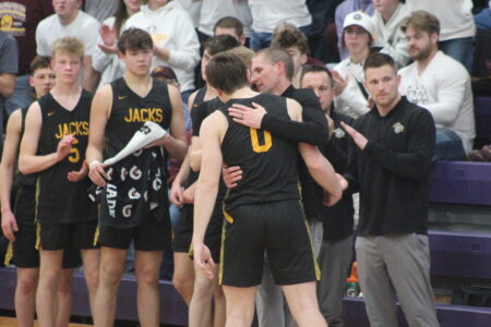 With about 45 seconds remaining, Larson subbed out Liebl for the final time in his stellar prep basketball career, and the two shared a hug as Liebl also did with his teammates down the bench.