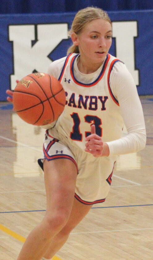 - Photo by Samantha Davis: Canby senior Brynn Kockelman drives to the basket against Minneota on Dec. 2 in the Lancers’ season opener.