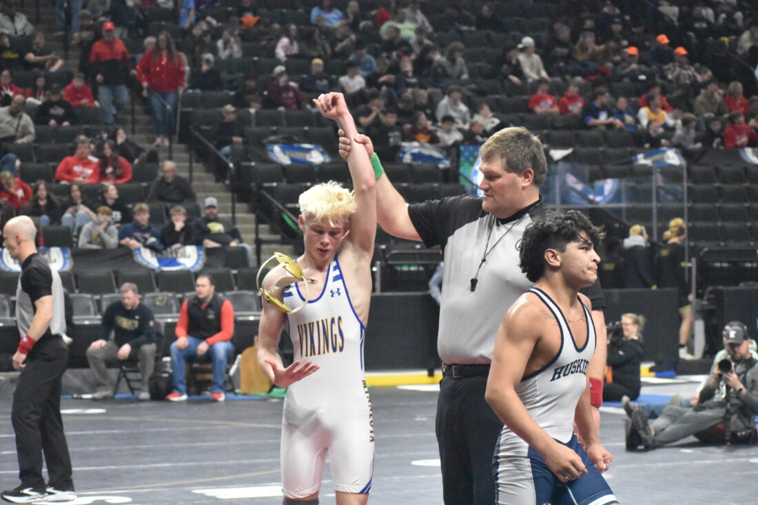 Minneota also picked up another win over LeSueur-Henderson in the state quarterfinals, though they lost to Chatfield 34-27 in the semifinals and Jackson County Central 30-27 in the third-place dual. Still, the Vikings returned home with a fourth-place trophy and DeVlaeminck earned All-Tournament honors.