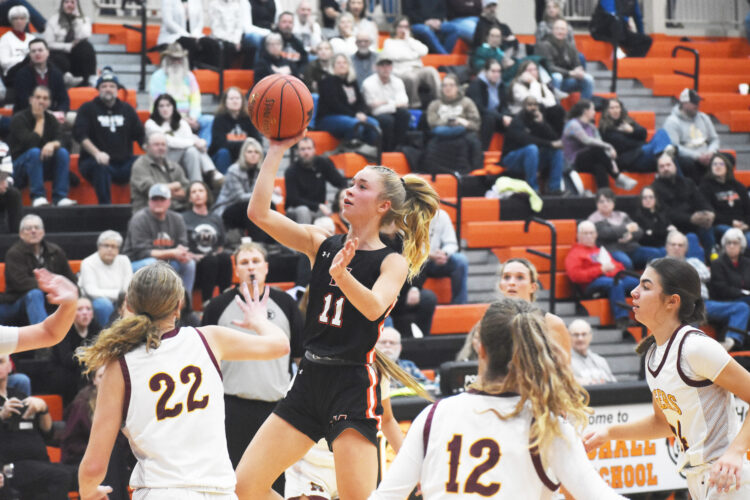 MARSHALL — The suffocating full-court press of the Marshall girls basketball team set the tone on Thursday night when they hosted the Harrisburg Tigers in non-conference play. Marshall forced 31 turnovers on the night, resulting in a 59-44 win.