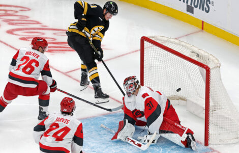 BOSTON (AP) — Casey Mittelstadt and Viktor Arvidsson scored third-period goals and the Boston Bruins extended their winning streak to three games with a 2-1 victory over the Carolina Hurricanes on Saturday.